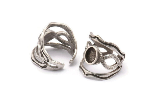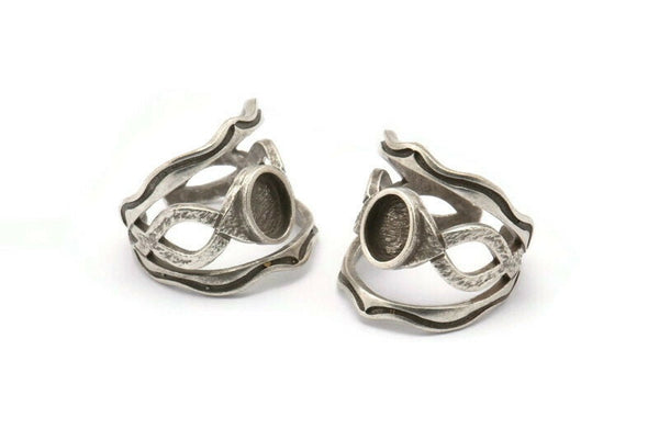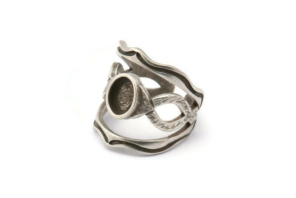 Antique Silver Plated Brass Duke Ring With 1 Stone Setting - Pad Size 8x6mm