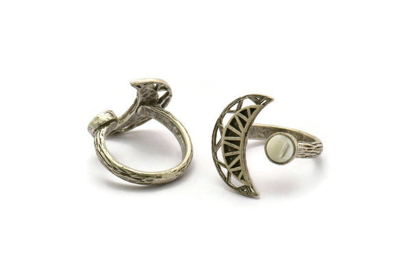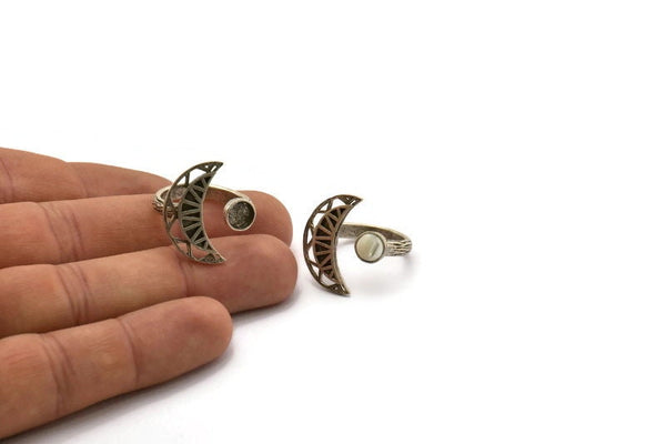 Antique Silver Plated Brass Moon And Planet Ring With 1 Stone Setting - Pad Size 6mm