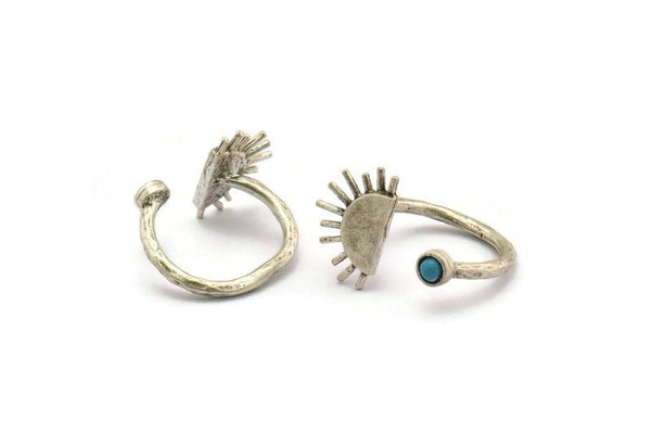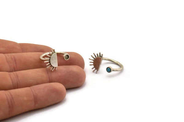 Antique Silver Plated Brass Moon And Sun Ring With 1 Stone Setting - Pad Size 3mm