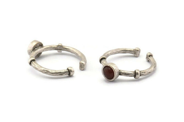 Antique Silver Plated Brass Round Ring With 1 Stone Setting - Pad Size 5mm