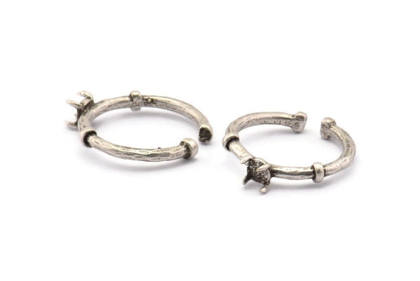 Antique Silver Plated Brass Adjustable 4 Claw Ring - Ring Stone Setting - Pad Size 5mm