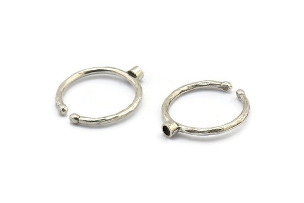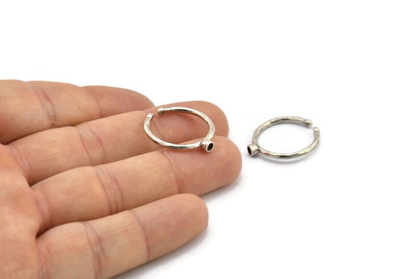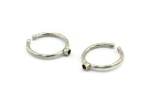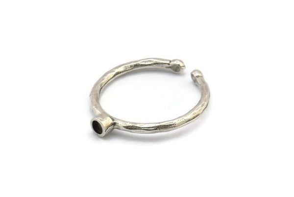 Antique Silver Plated Brass Round Ring With 1 Stone Setting - Pad Size 2mm