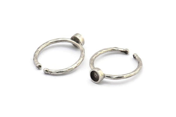 Antique Silver Plated Brass Round Ring With 1 Stone Setting - Pad Size 4mm