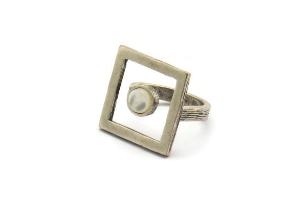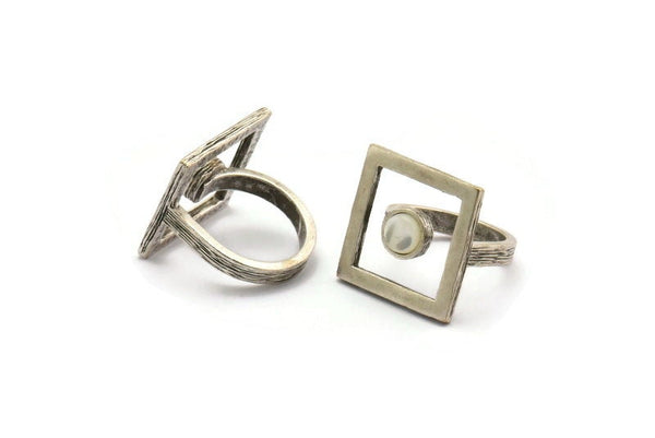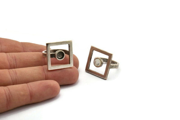 Antique Silver Plated Brass Square Ring With 1 Stone Setting - Pad Size 6mm