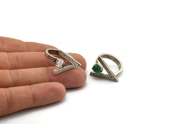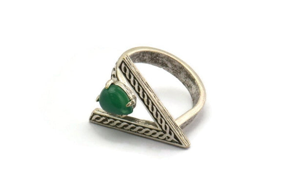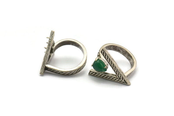 Antique Silver Plated Brass Triangle Ring With 1 Stone Setting - Drop Pad Size 8x6mm