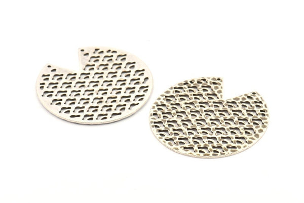 Hammered Antique Silver Plated Brass Pizza Slice Charms With 2 Holes