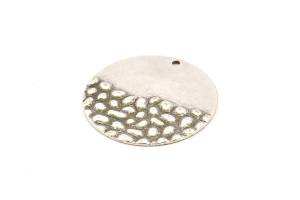 Antique Silver Plated Brass Round Charms With 1 Hole