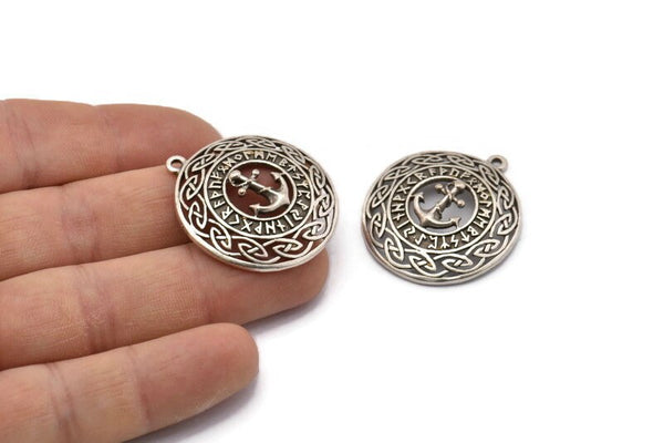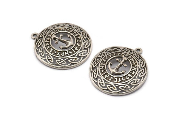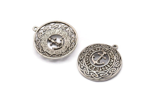 Antique Silver Plated Brass Vikings Anchor Charms With 1 Loop