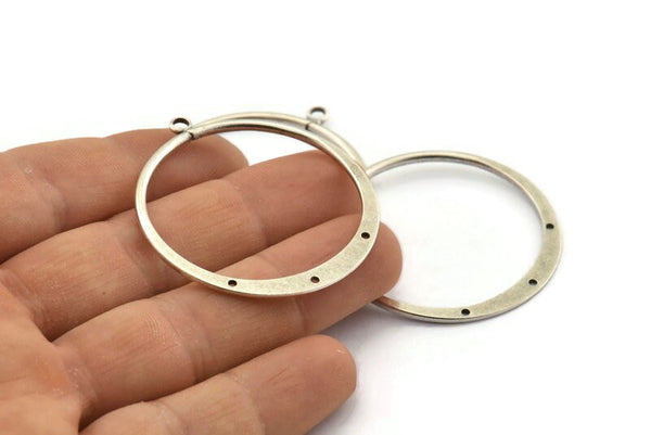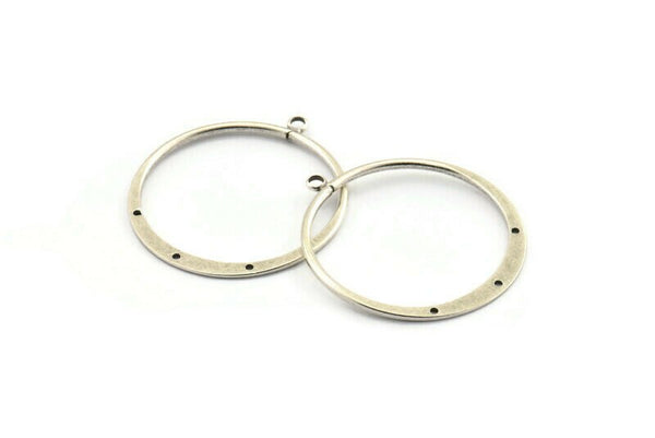 Antique Silver Plated Brass Round Earring Charms With 1 Loop and 3 Holes