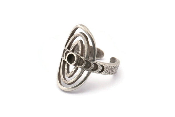 Silver Royal Ring, 2 Antique Silver Plated Brass Royal Rings With 1 Stone Settings - Pad Size 3mm N1953 H1492