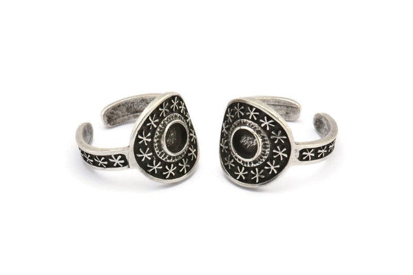 Silver Royal Ring, Antique Silver Plated Brass Royal Ring With 1 Stone Settings - Pad Size 5mm N2021 H1448