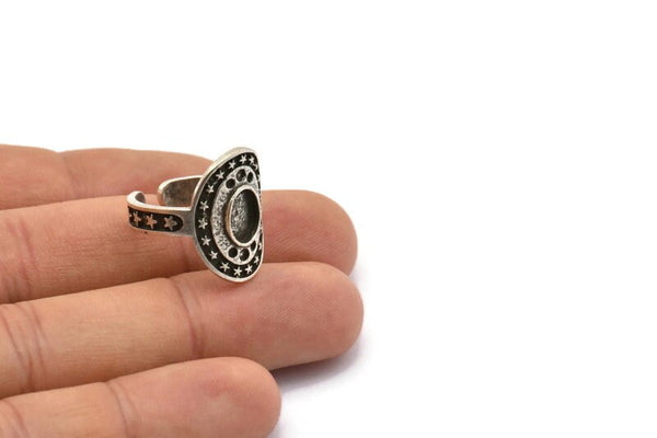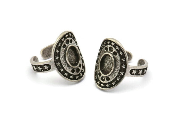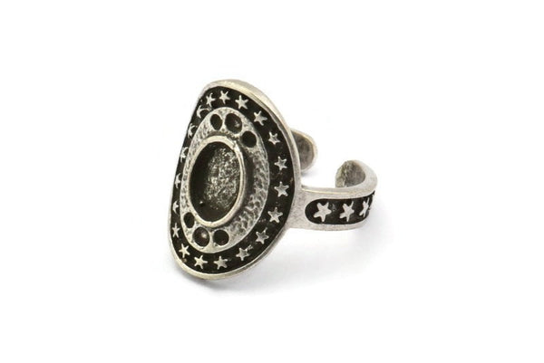 Silver Royal Ring, Antique Silver Plated Brass Royal Ring With 1 Stone Settings - Pad Size 8x6mm N1992 H1467