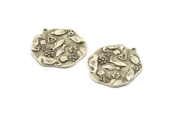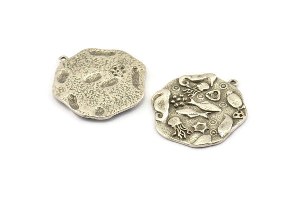 Antique Silver Plated Brass Sea Creatures Charm With 1 Loop