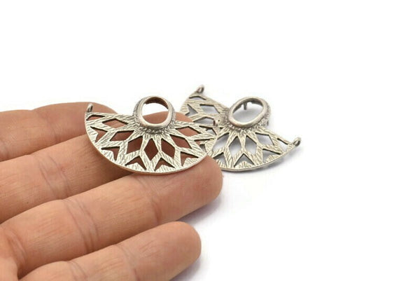 Silver Semi Circle Pendant, 2 Antique Silver Plated Brass Semi Circle Pendants with 2 Loops and 1 Pad Setting (36x25x3x1mm) BS 1948
