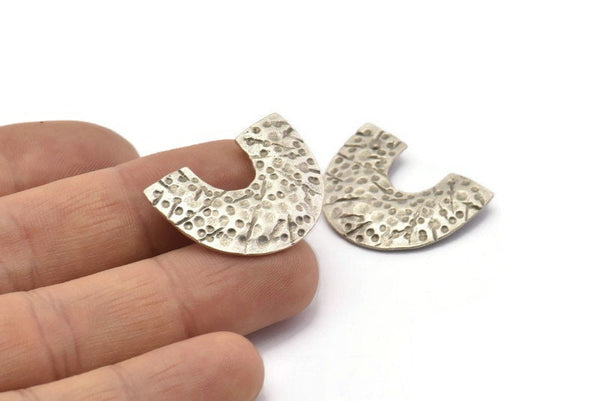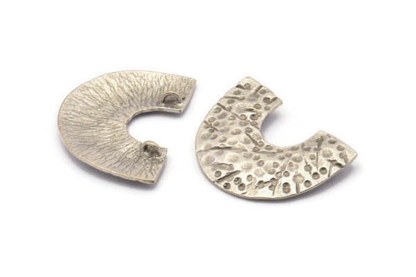 Antique Silver Plated Brass Semi Oval Pendants With 2 Loops