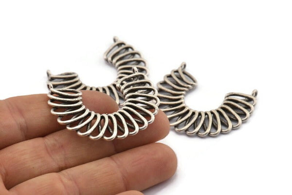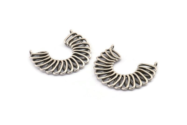 Antique Silver Plated Brass Semi Sun Pendant With 2 Loops