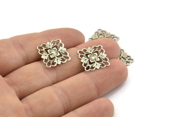 Antique Silver Plated Brass Square Filigree Charms