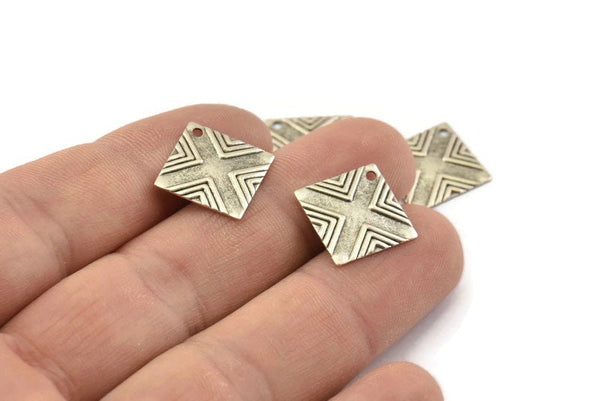 Textured Antique Silver Plated Brass Square Charms With 1 Hole