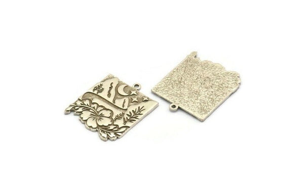 Silver Square Charm, Antique Silver Plated Brass Mountain And Tree Charm With 1 Loop, Crescent Moon Charms, Findings (28x23x1.5mm) N2280