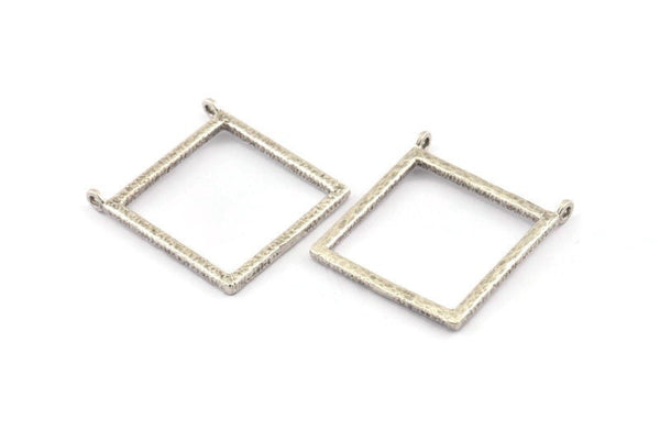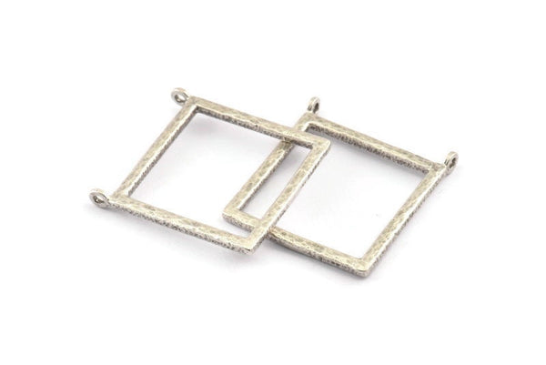 Antique Silver Plated Brass Square Charms With 2 Loops