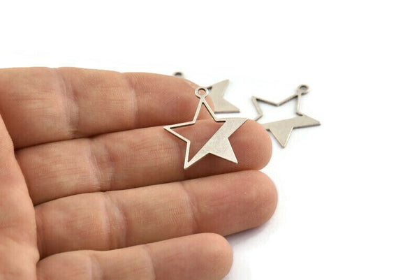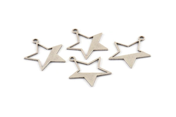 Antique Silver Plated Brass Star Charms With 1 Hole