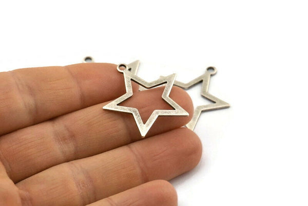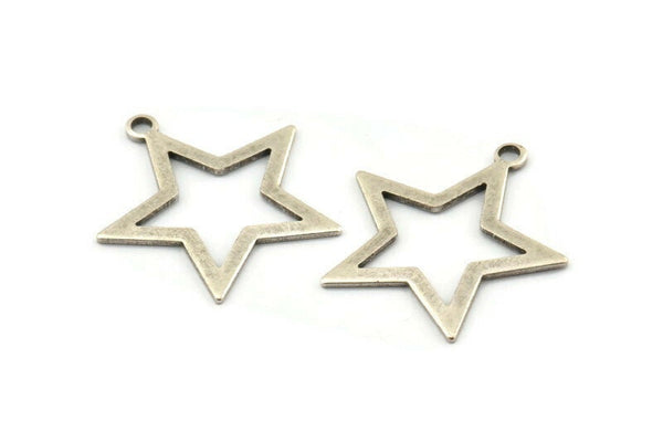 Antique Silver Plated Brass Star Charms With 1 Loop