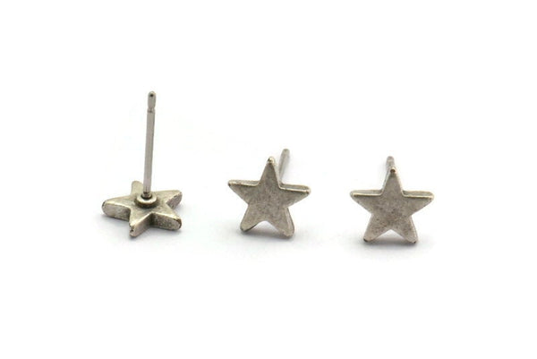 Antique Silver Plated Brass Star Stud Earrings