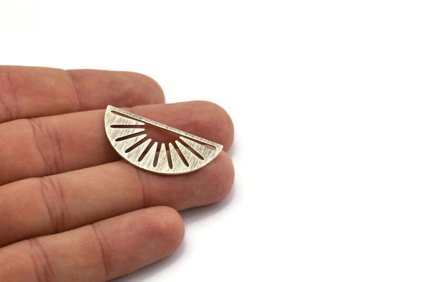 Silver Sun Blank, 4 Textured Antique Silver Plated Brass Semi Circle Blanks (36x17x0.60mm) M02073