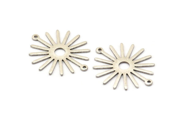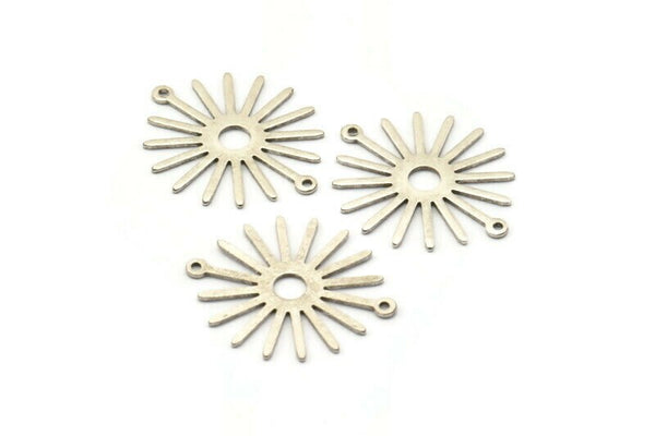 Antique Silver Plated Brass Sun Connectors With 2 Loops