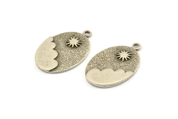 Antique Silver Plated Brass Sun And Cloud Charms With 1 Loop