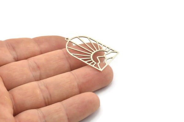 Silver Sun Charm, 4 Antique Silver Plated Brass Mountain Charms With 1 Loop, Sun Rising Charms, Findings (32x20x0.60mm) A6357