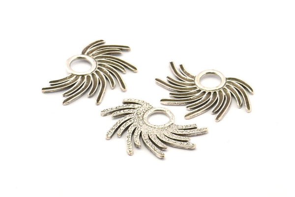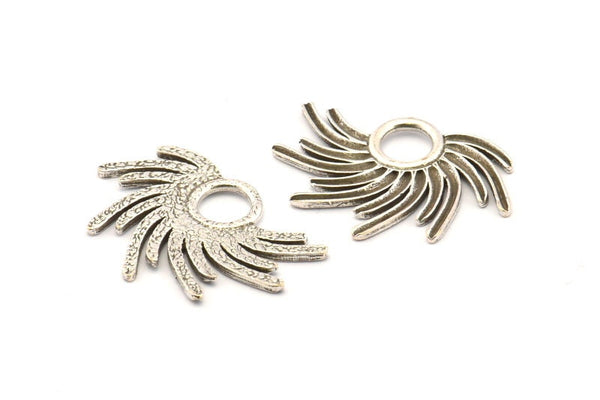 Silver Sun Charm, 4 Antique Silver Plated Brass Sunshine Charms, Pendants, Earrings, Findings (30x21mm) N0783