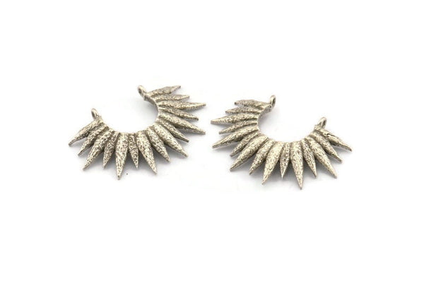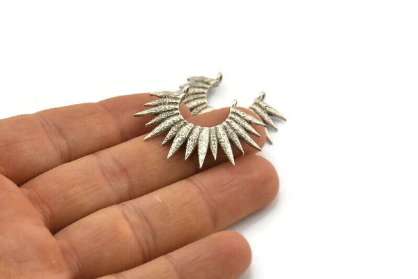 Antique Silver Plated Brass Sun Ethnic Pendants With 2 Loops