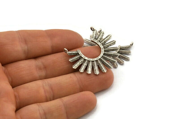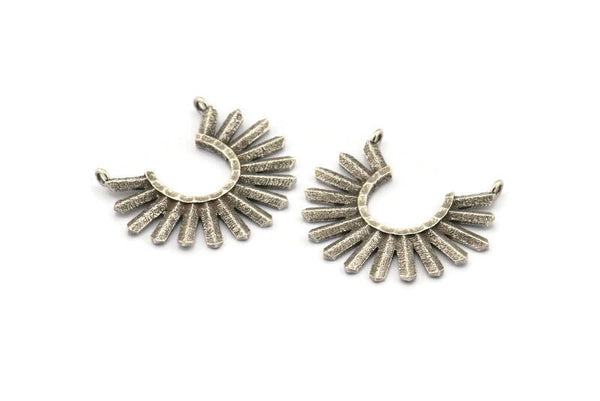 Antique Silver Plated Brass Sun Pendants With 2 Loops