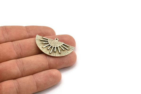 Antique Silver Plated Brass Textured Sunny Pendants With 1 Loop