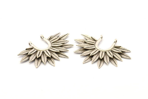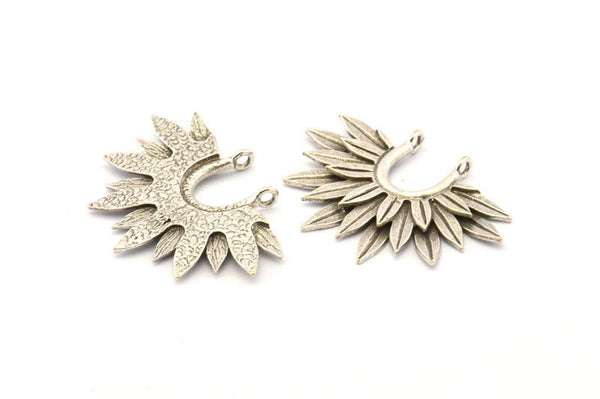 Antique Silver Plated Brass Flower Pendants With 2 Loop