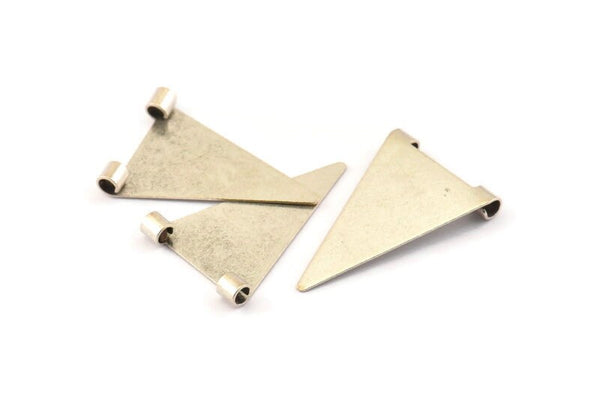 Antique Silver Plated Brass Triangle Charms With 2 Holes