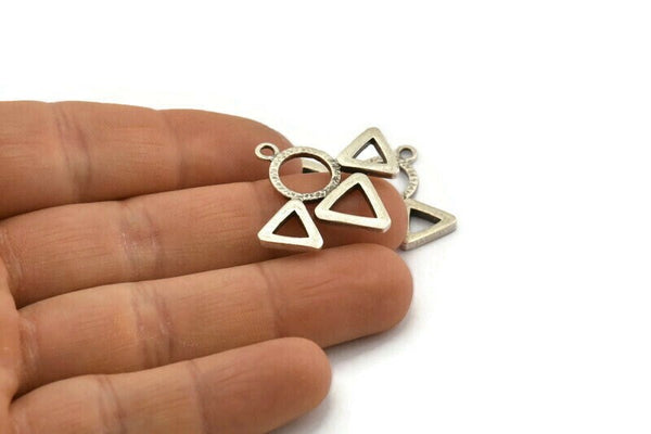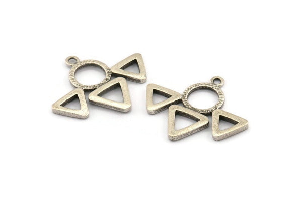 Silver Triangle Charm, 2 Antique Silver Plated Brass Triangle Charms With 1 Loop (27x31.5x2mm) BS 1981