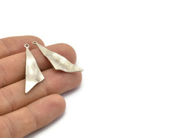 Antique Silver Plated Brass Wavy Triangle Charms With 1 Loop