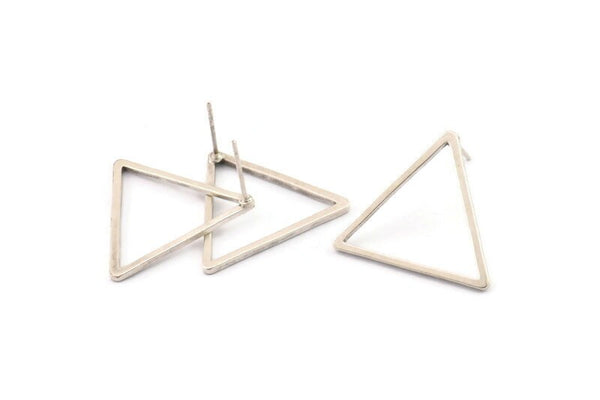 Silver Triangle Earring, 4 Antique Silver Plated Brass Triangle Stud Earrings (23x1.2mm) D0110 A1170
