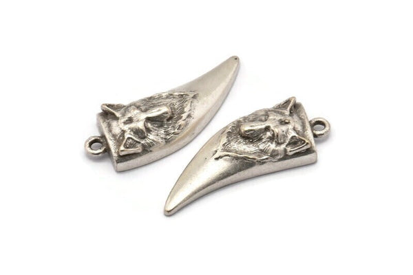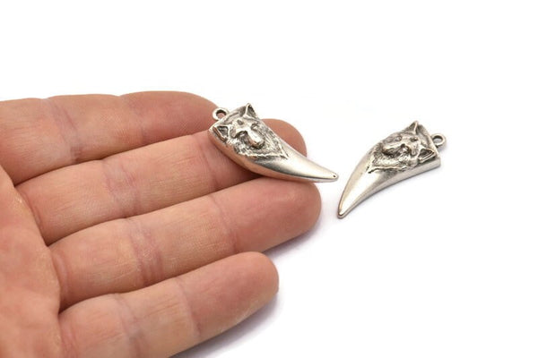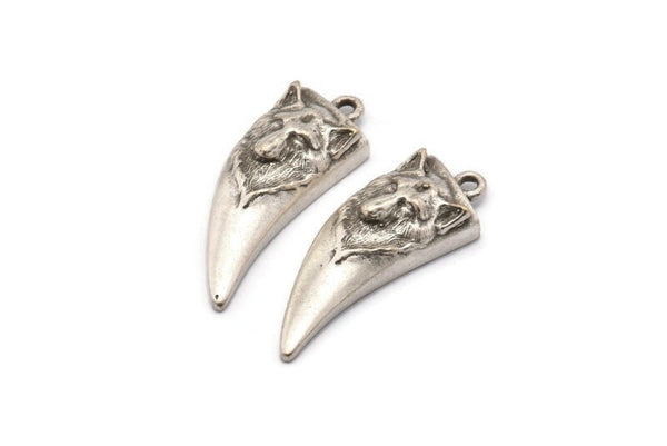 Silver Wolf Charm, Antique Silver Plated Brass Wolf Tooth Charms With 1 Loop (32x13mm) N1942 H1503