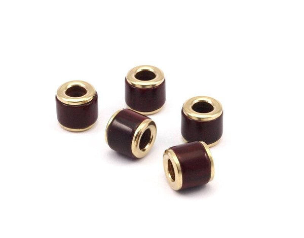 6 Brass Polyester Maroon Beads (13x12mm) Hole Size 6mm N1 T090