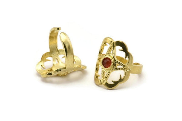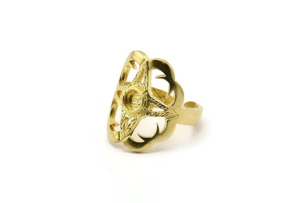 Raw Brass Boho Rings With 1 Stone Settings - Pad Size 4mm