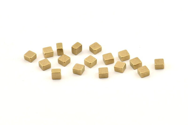 Brass Cube Bead, 50 Raw Brass Square Cube Beads (4x3mm) D1498