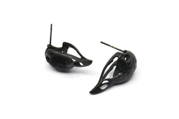 Black Bird Earring, 2 Oxidized Black Brass Bird Skull Stud Earrings (26x11x6mm) N0958