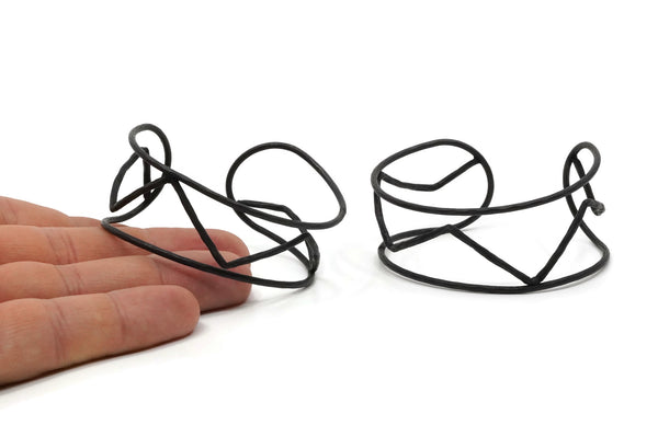 Black Boho Cuff, Oxidized Black Brass Wire Bracelet Bangle Brc148