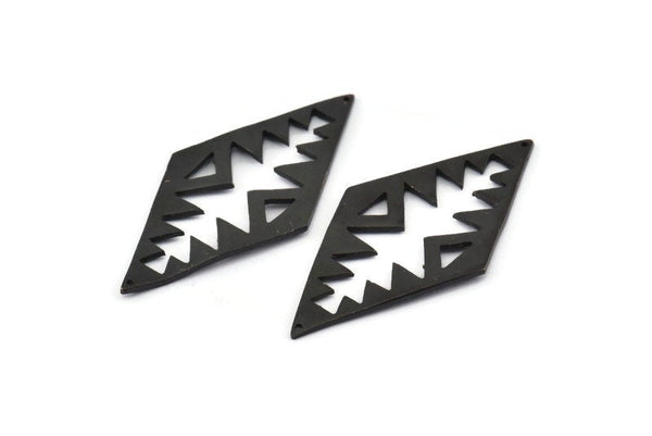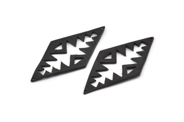 Black Charm, Oxidized Black Brass, Black Diamonds, Black Connectors (51x25x1.2mm) U070