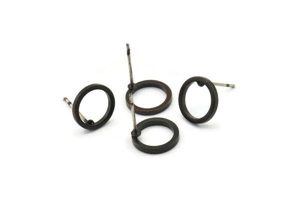 Black Circle Earring, 6 Oxidized Black Brass Circle Stud Earrings (12mm) N0442 A1132 Q0219