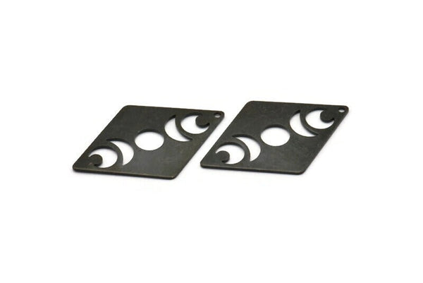 Oxidized Black Brass Moon Charms With 1 Hole, Rhombus Blanks