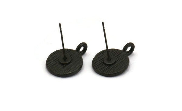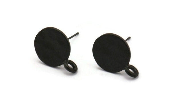 Oxidized Black Plated Brass Round Earring Stud, Earring Charms With 1 Loop